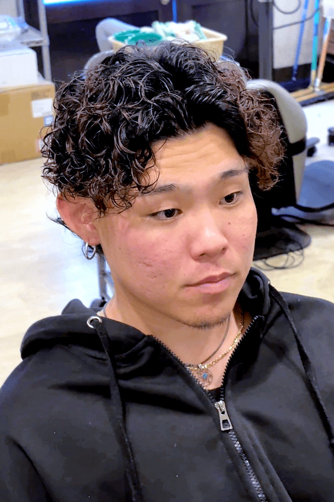 グランジパーマは、セットしすぎていないような「無造作感」と「ラフさ」が特徴のパーマスタイルです。90年代に流行したグランジファッションにインスパイアされており、男らしい無骨さや色気を演出できます。髪の毛がランダムに動くような、バラつきのあるカール感が特徴です。外国人のくせ毛のような雰囲気で、自然体でありながらも個性を引き出します。ウェーブやカールが整然としている通常のパーマとは異なり、少し雑然とした印象が自由で個性的な雰囲気を演出します。